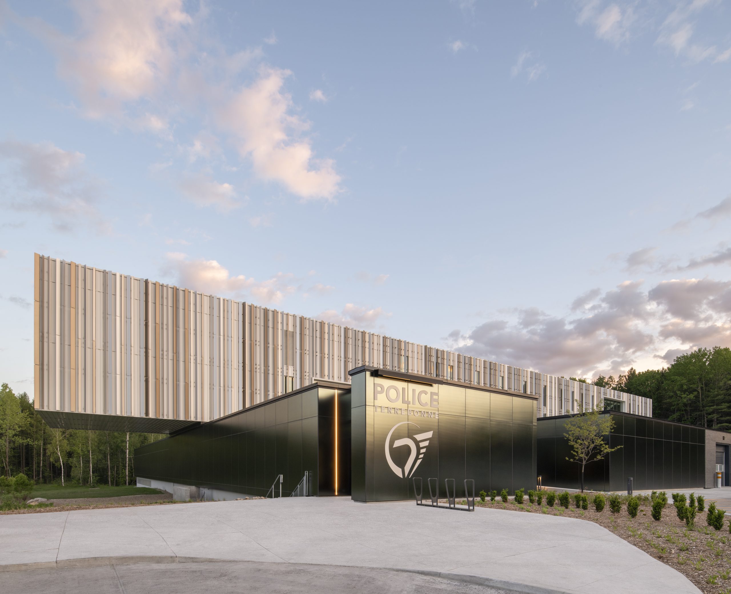Robuste et ouvert, l’Édifice Guy-Dubois, quartier général de la police de Terrebonne, propose une nouvelle vision de l’architecture institutionnelle, où sécurité et transparence se conjuguent au service de la communauté. Ce complexe de 13 000 m² réunit plus de 230 policiers et policières ainsi qu’une équipe civile de 25 personnes, un personnel auparavant dispersé sur quatre sites, en un pôle intermunicipal unique.