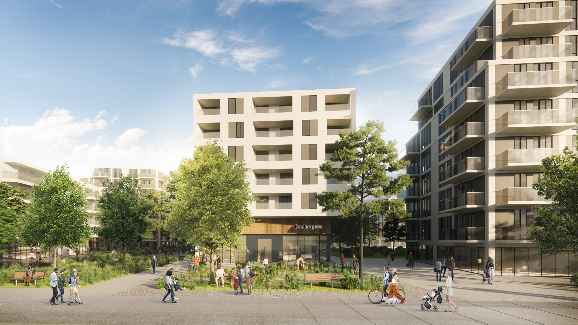 Spanning a 190-hectare area, the vision is articulated at both the local and broader territorial scales to ensure coherence with the surrounding urban context. Within this historically large-format commercial sector, public spaces are being reimagined, neighbourhood amenities strengthened, and housing diversified to meet residents’ needs. The planning approach supports the transformation of the area into a complete neighbourhood, with mixed-use where housing, retail, local services, green spaces, and public spaces coexisting alongside sustainable mobility solutions. The overall design is structured around active corridors and resilient, human-scale living environments, aligned with a structuring public transit project, to foster an inclusive and balanced quality of life.