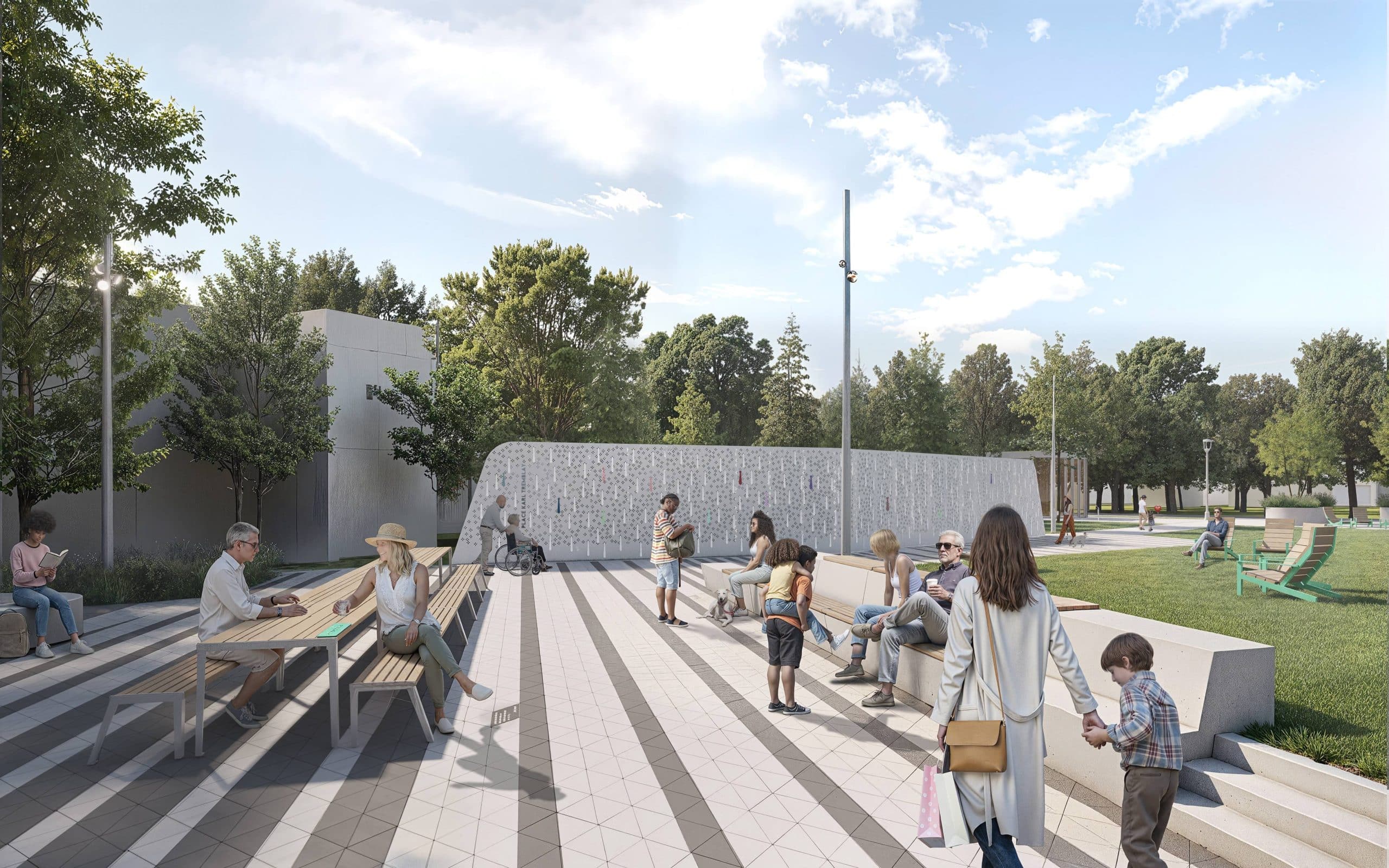 Set in the heart of the town of l’Assomption, Place Karl-Tremblay is a commemorative site designed in tribute to the singer who was the musical soul of the Cowboys fringants band for nearly 30 years In keeping with the personality of the artist who died in 2023 and the values he conveyed, the venue is intended to be humble, joyful, multi-generational and inclusive.